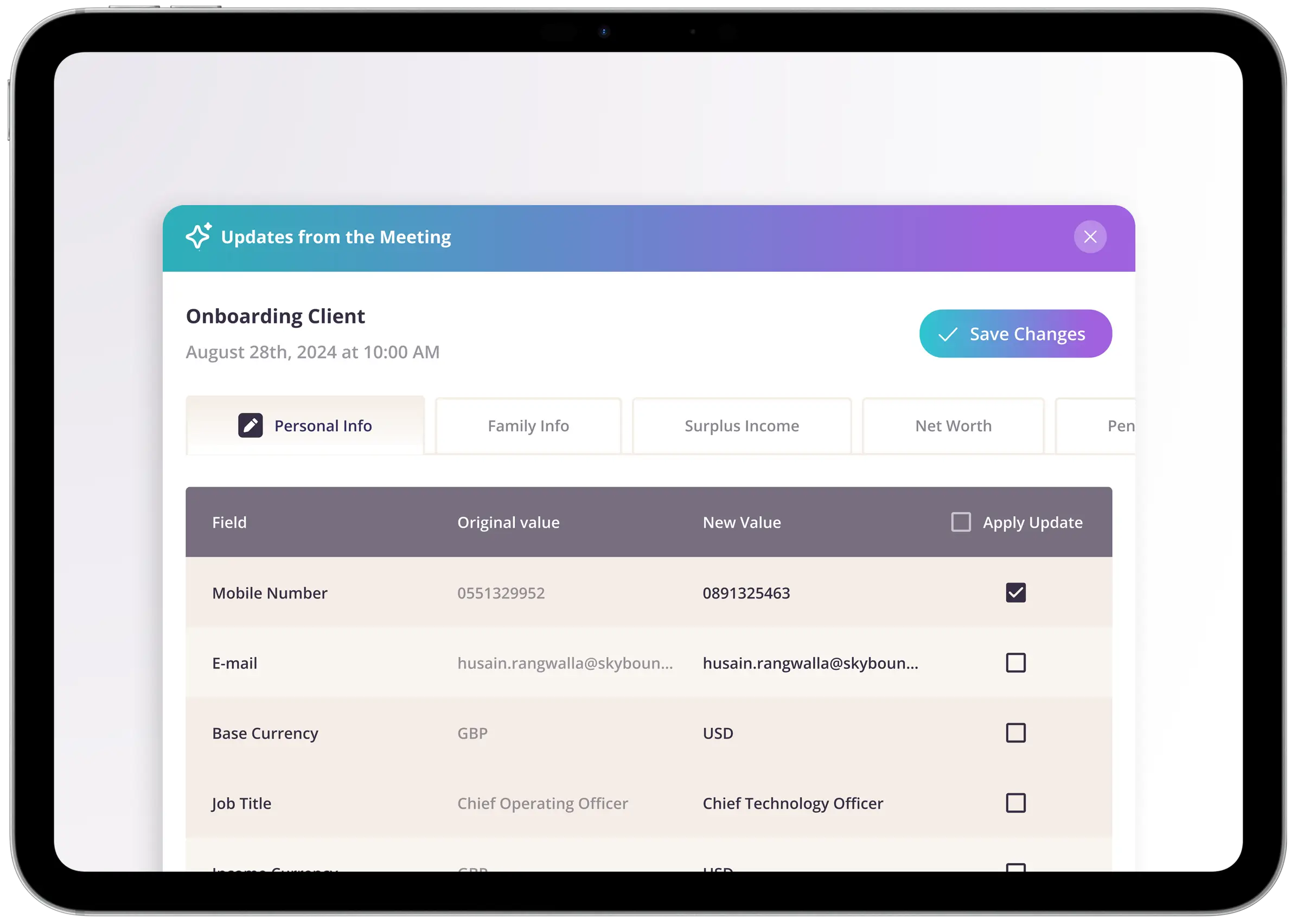 The Skybound App keeps plans live. Clients track progress, advisers receive real-time insights, and every review becomes data-driven, accurate, and actionable.